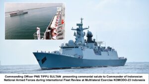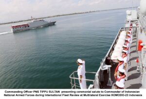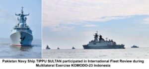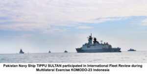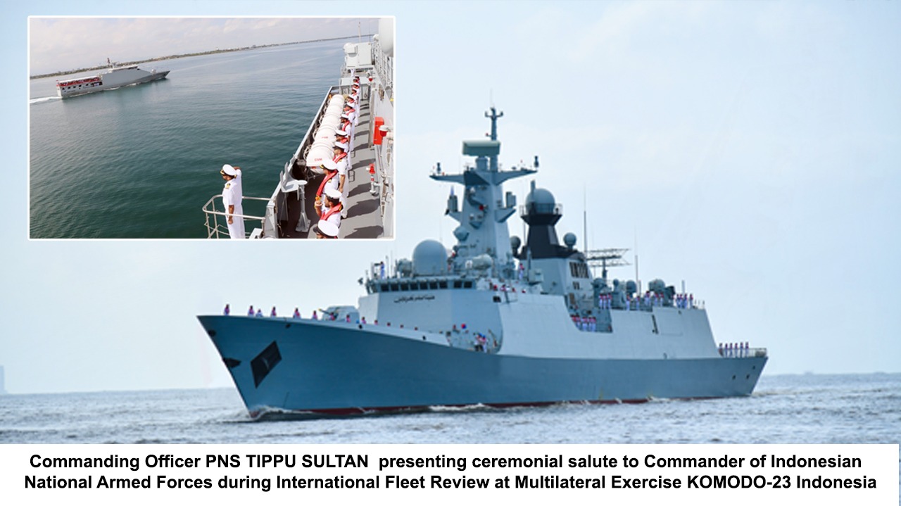 ۔ بعد ازاں, پی این ایس ٹیپو سلطان نے مکاسر میں بین الاقوامی فلیٹ ریویو میں شرکت کی جس کا مشاہدہ انڈونیشین نیشنل آرمڈ فورسز کے کمانڈر نے کیا۔ اس کے ساتھ ساتھ جہاز کے افسران اور عملے نے مختلف کانفرنسز، سیمینارز،نہ نالج شیئرنگ سیشنز اور سماجی بہبود کی سرگرمیوں میں حصہ لیا۔ بندرگاہ کی سرگرمیوں کی تکمیل پر پی این ایس ٹیپو سلطان نے آسٹریلیا، برونائی، چین، اٹلی، جاپان، ملائیشیا، فلپائن، روس، سنگاپور، تھائی لینڈ، امریکہ اور ویتنام کے جہازوں کے ہمراہ سمندر میں سرچ اینڈ ریسیکو اور میری ٹائم انٹرڈکشن آپریشنز مشقوں میں حصہ لیا.پاک بحریہ کے جہاز ٹیپو سلطان کے دورہ انڈونیشیا نے مختلف بحری ممالک کے مابین بحری تعاون کو فروغ دینے اور انڈونیشیا کے ساتھ دوطرفہ تعلقات اور مجودہ دوستی کو مظبوط بنانے میں اہم کردار ادا کیا.