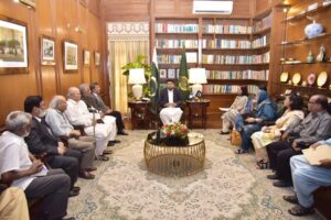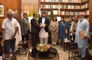 گورنر سندھ سے ادارہ یادگار غالب لائبریری کے گیارہ رکنی وفد کی ملاقات