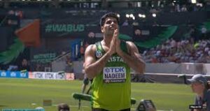 میں ان کی تھرو کو فاول قرار دیا گیا تھا۔ارشد ندیم اور نیرج چوپڑا کے درمیان آخری تھرو تک گولڈ میڈل کیلئے کشمکش رہی تھی۔جب چوتھے نمبر پر آنے والے جولین ویبر نے اپنی آخری تھرو 79.01 میٹر کی کی تو اس کے ساتھ ارشد ندیم کا میڈل یقینی ہوگیا اور پھر جیکب ویڈلیج بھی ارشد ندیم کو پیچھے چھوڑنے میں ناکام رہے۔آخری