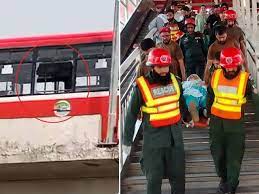 راولپنڈی (نمائندہ خصوصی) راولپنڈی میں رحمان آباد میٹرو اسٹیشن کے قریب میٹرو بس میں آتشزدگی کے سبب مسافروں نے شیشے توڑ کر چھلانگیں لگادیں، ایک خاتون سمیت 2 افراد شدید زخمی ہوگئے۔ میڈیارپورٹ کے مطابق راولپنڈی سے اسلام آباد جانے والی میٹرو بس کے انجن میں آگ لگی جس سے بس میں دھواں بھر گیا، بس میں موجود مسافروں میں بھگڈر مچ گئی، مسافروں نے چلتی بس کے شیشے توڑ کر چھلانگیں لگائی جس میں خاتون سمیت 2 افراد شدید زخمی ہوئے۔ ترجمان ریسکیو 1122 کے مطابق امدادی ٹیموں نے موقع پر پہنچی کر دونوں زخمیوں کو بے نظیر بھٹو ہسپتال منتقل کردیا، آگ لگنے کے واقع کے بعد میٹرو بس سروس ایک گھنٹے تک معطل رہی۔