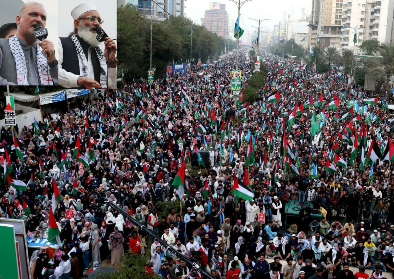 اسرائیل نے امریکہ،برطانیہ اور یورپ کی سرپرستی اور عالم اسلام کے حکمرانوں کی بزدلی کے باعث غزہ کا محاصرہ کیا ہوا ہے۔سراج الحق عوام 8فروری کو ترازو پر مہر لگائیں اور جماعت اسلامی کی امانت دار وجرات مند قیادت کومنتخب کریں ٗ غزہ ملین مارچ سے خطاب ہم اپنی کسی بھی کارنر میٹنگز میں فسلطینی مسلمانوں کو نہیں بھولیں گے ٗامریکہ واسرائیل مردہ باد کے نعرے لگائیں گے ٗ حافظ نعیم الرحمن