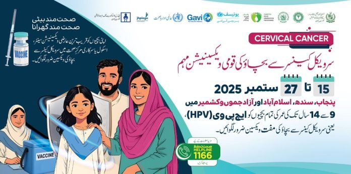 اسلام آباد۔(نمائندہ خصوصی ہیلتھ رپورٹر )سرویکل کینسر کی شرح میں اضافے کے باعث حکومت نے پہلی مرتبہ انسداد سرویکل کینسر کی ویکسین متعارف کرانے کا فیصلہ کیا ہے، یہ مہم 15 سے 27 ستمبر تک جاری رہے گی جس کا مقصد بچیوں کو مستقبل میں سرویکل کینسر سے تحفظ فراہم کرنا ہے۔ اس مہم کے ذریعے پنجاب، سندھ، اسلام آباد اور آزاد جموں و کشمیر میں 9 سے 14 سال کی عمر کی ایک کروڑ تیس لاکھ لڑکیوں کو سرویکل کینسر سے بچاؤ کی سنگل ڈوز ویکسین مفت لگائی جائے