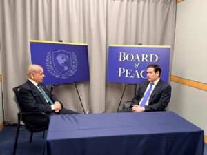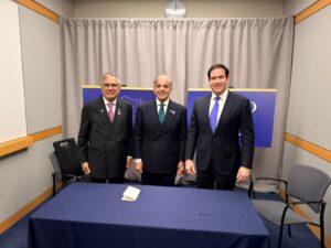 مطابق وزیراعظم محمد شہباز شریف نے بورڈ آف پیس لیڈرز کے اجلاس کے موقع پر امریکی وزیر خارجہ مارکو روبیو سے ملاقات کی۔ اس موقع پر نائب وزیراعظم و وزیر خارجہ سینیٹر محمد اسحاق ڈار بھی وزیراعظم کے ہمراہ تھے ۔ وزیراعظم نے امریکی صدر ڈونلڈ ٹرمپ اور وزیر خارجہ روبیو کو بورڈ آف پیس کے کامیاب افتتاحی اجلاس کے انعقاد پر مبارکباد دی اور اس عزم کا اعادہ کیا کہ پاکستان غزہ امن منصوبے پر عمل درآمد کے لیے بورڈ آف پیس کے ساتھ مل کر کام کرنے کے لیے تیار ہے۔دونوں