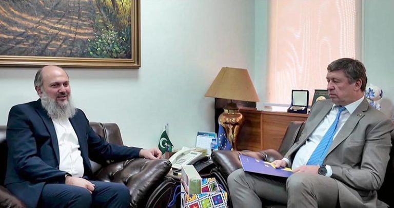 اسلام آباد( نمائندہ خصوصی):وفاقی وزیر تجارت جام کمال خان نے یورپی یونین کے سفیر ریمونڈس کاروبلس سے ملاقات میں دوطرفہ تجارت اور سرمایہ کاری کے فروغ کے عزم کا اعادہ کرتے ہوئے اعلان کیا ہے کہ پاکستان-یورپی یونین بزنس فورم رواں ماہ کے آخر میں اسلام آباد میں منعقد ہوگا، جس سے کاروباری روابط میں وسعت اور برآمدات میں اضافے کی نئی راہیں کھلنے کی توقع ہے۔ جمعہ کو جاری پریس ریلیز کے مطابق وفاقی وزیر تجارت جام کمال خان نے پاکستان میں تعینات یورپی یونین کے سفیر ریمونڈس کاروبلس سے ملاقات میں یہ بات کی. ملاقات میں دوطرفہ تجارت، سرمایہ کاری اور اقتصادی تعاون کے فروغ پر تفصیلی تبادلہ خیال کیا گیا۔ ملاقات کے دوران وزیر تجارت نے بتایا کہ پاکستان-یورپی یونین بزنس فورم 28 اور 29 اپریل 2026